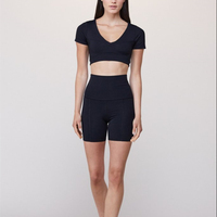 Camisetas de gimnasio recortadas de manga corta con cuello en V para mujer, Top corto de compresión con espalda completa, camisetas deportivas elásticas ligeras