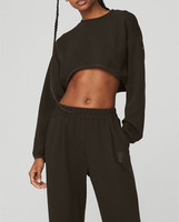 เสื้อฮู้ดสตรีเสื้อสเวตเตอร์สวมหัวแขนยาวเสื้อครอป