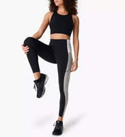 Women's New Arrival Basic Color Block Compressive Yoga Sets Supportive Racer Back Sports Bra with High Waist Patchwork Leggings