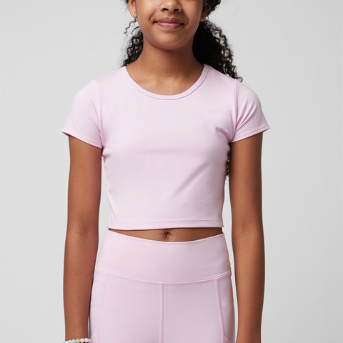New Arrival Scoop Neck Basic Tee for Kids Girls Buttery Soft Cropped Top Lightweight Super Stretchy Workout t Shirts