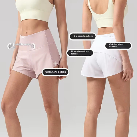 Yoga Shorts de três pontos Hyostar Mulheres cintura alta leve cordão da cintura verão Spandex Wicking Exercício Weixian-Swift