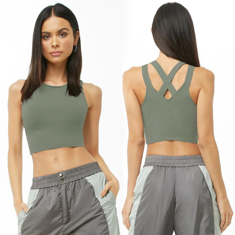บราออกกำลังกายไม้ไผ่สปอร์ตเอวลอยสำหรับผู้หญิงเสื้อครอป