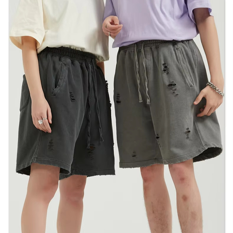 Yüksek sokak stili erkek boy sıkıntılı yıkanmış şort Trendy yırtık Retro Denim şort