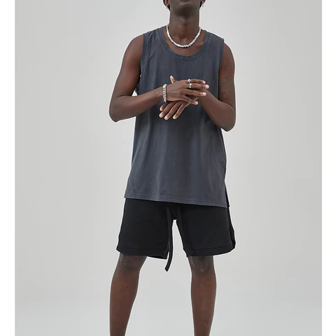 2025 SS erkek balmumu boya Retro kolsuz Tank: sokak giyim yıkama ve yan yarık Hem, kravat boya çizgisi tank top